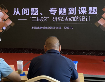 在上海豪利维拉酒店5楼水晶厅,“云南楚雄州中小学管理干部、骨干教师培训班”。祝庆东老师受邀为90位学员开设专题讲座《从问题、专题到课题——“三层次”研修活动的新设计》